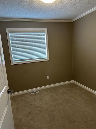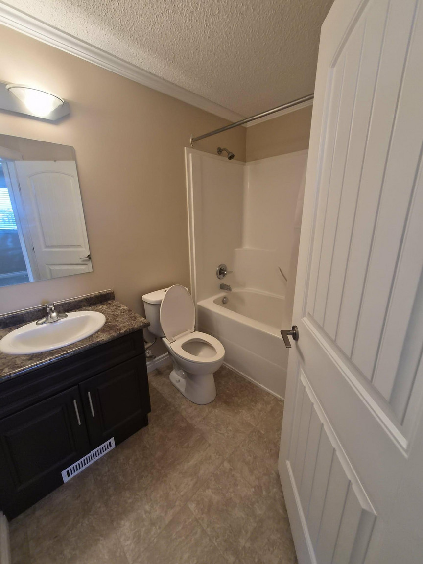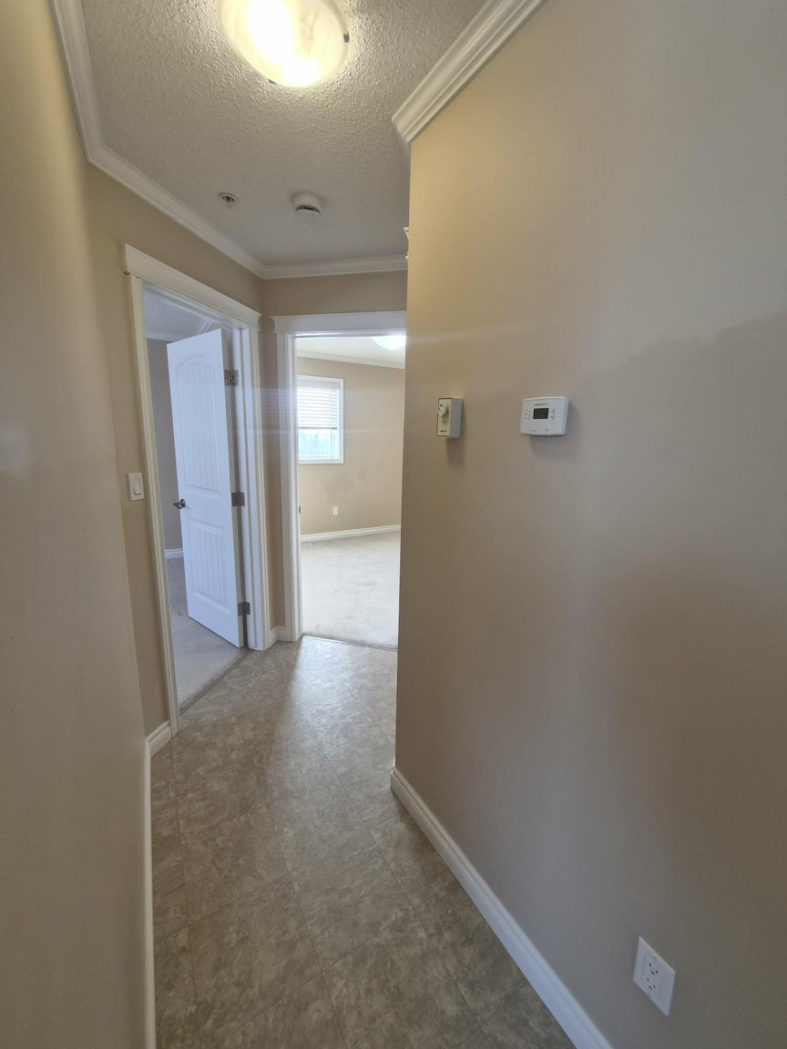Linoleum and plush carpet throughout